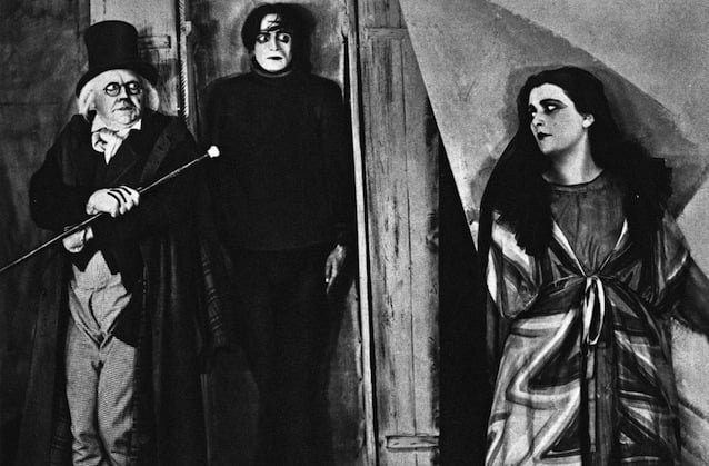 Muchos de los cortometrajes del pionero Georges Méliés son deudores claros de su pasado como gente del teatro, así mismo estaban impregnados de las características del Grand Guignol, el famoso teatro francés de las atrocidades. Este título alemán que se cita continuamente como un antecedente del cine expresionista y el de aquel Hollywood que produjo los monstruos clásicos de la Universal, nos presenta esta realidad retorcida también en escenarios teatrales de manera consciente para introducirnos en una historia de locura en la cual un hombre cuenta las andanzas de un hipnotizador de feria y su esclavo sonámbulo, deambulando no sólo entre esos escenarios irreales sino a través de flashbacks dentro de flashbacks.