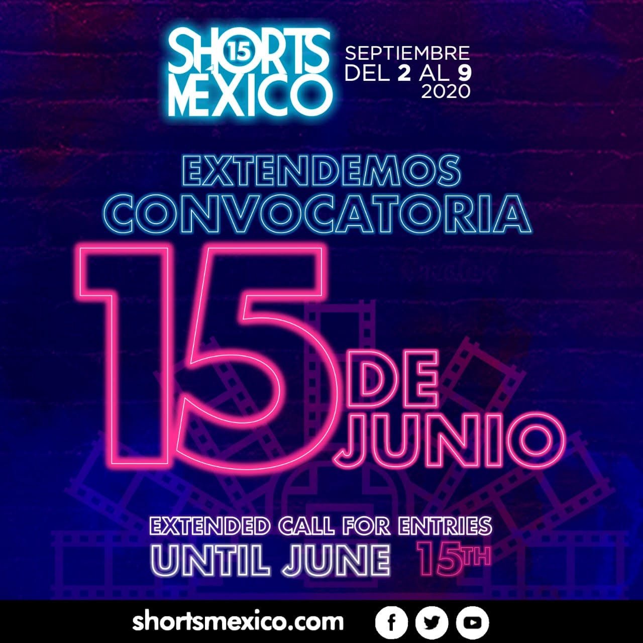 Redacción. SHORTS MÉXICO ANUNCIÓ LA EXTENSIÓN DE SUS CONVOCATORIA HASTA EL 15 DE JULIO DEBIDO A LA CONTINGENCIA SANITARIA. Shorts México es el festival cinematográfico, especializado en cortometrajes, más grande de América Latina; una plataforma que apoya y promueve expresiones creativas de cineastas emergentes y consolidados de todo el mundo. El ciclo Noche de Shorts México se realiza durante todo el año, ahí se presentan estrenos, exhibiciones, retrospectivas y clases magistrales.