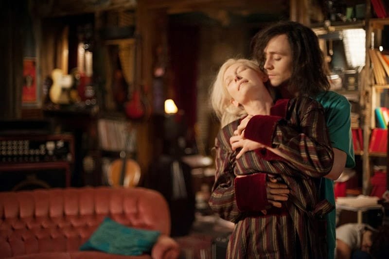 Eve es amiga íntima de Christopher Marlowe (John Hurt), autor “verdadero” de las obras de Shakespeare, un vampiro ya cansado de vivir, y comparten un exquisito gusto por las lecturas -en una escena, Eve lee “Los amores en la luna”, de Ramón de Campoamor, así como textos clásicos en distintos idiomas, y mete en la maleta al Quijote, entre otras joyas-, y la música, escuchada de viejos discos LPs -que conforman una magnífica banda sonora para la película, que va de Wanda Jackson a Charlie Feathers-, mientras sus vidas transcurren lentas, languideciendo entre tapetes turcos, sofás envejecidos y libros dispersos -todo en interiores iluminados por la fotografía de Yorick Le Saux-, durmiendo juntos, desnudos, y cayendo en éxtasis, cada vez que beben una copa de sangre, como si de un buen Chianti se tratara. Eve le pregunta a Adam, que conoció a Byron, sobre la personalidad del poeta, y Adam responde que no se trataba sino de un engreído, todo lo contrario a su vida actual, con una preferencia por permanecer oculto y alejado de la fama, aunque su música goce de cierto respeto entre la subcultura Underground.