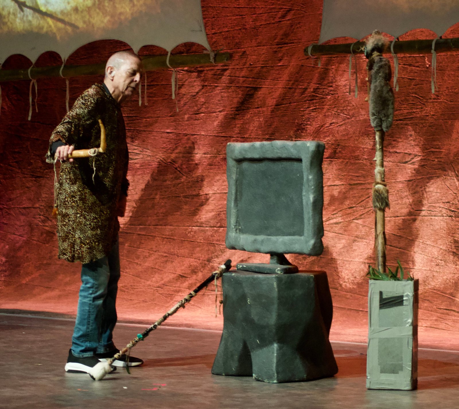 “Defendiendo al cavernícola” de Rob Becker. Dirección de Jaime Matarredona, con el actor César Bono. Producción de Morris Gilbert y Mejor Teatro.