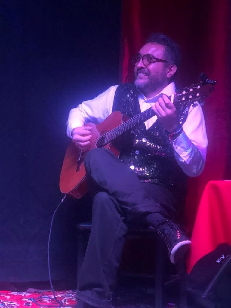 “Mariposa de Bar” con Tito Vasconcelos y “No tengo edad para ese personaje” con Blanca Loaria. Con la guitarra de Elliot Sandin.
