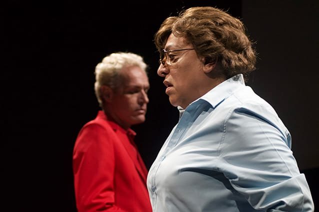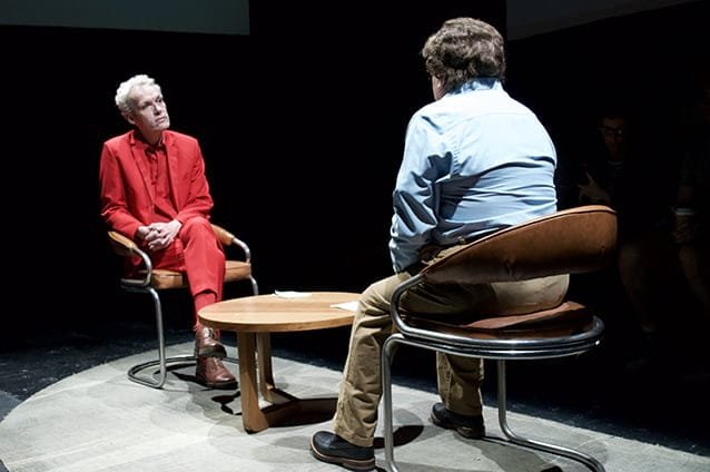 La escenografía es sencilla, con dos sillas y una mesa, que concentran por completo la atención en los actores, sin necesitar más. Es una gran puesta en escena que seguramente nunca se ha visto antes en el teatro.
