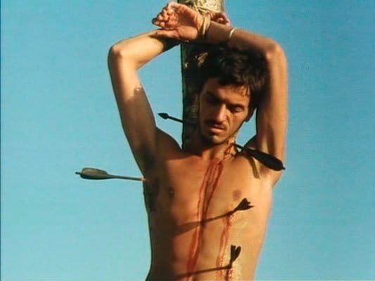 Derek Jarman, quien rodó esta película en latín y con actores principiantes, lo hizo como un ejercicio experimental dónde el homoerotismo que se ha encontrado en las representaciones pictóricas de este mártir cristiano (condenado a ser asaeteado, penetrado, atado a un poste, pero no muerto, por una cohorte de soldados romanos) prima sobre la propuesta biográfica. La cinta es un tanto floja pero vale la pena echarle un vistazo por formar parte de la filmografía del director que nos daría posteriormente la magistral “Caravaggio” (1986) la biopic del maestro del claroscuro italiano de los Siglos XVI y XVII.